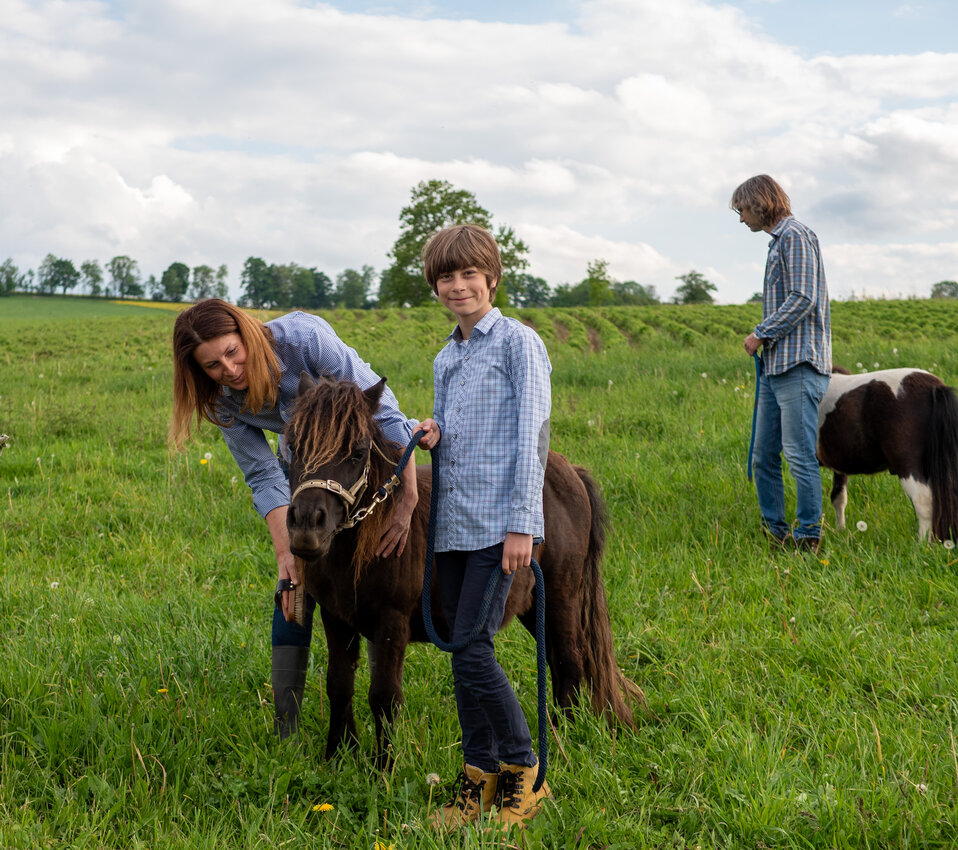 Velká radost jsou pro nás teď poníci, kteří budou šetrně vypásat okolí tůní a zároveň jsou to kamarádi pro naše děti. Ještě by tomuto místu slušel rozlehlý ovocný sad, tak třeba časem.