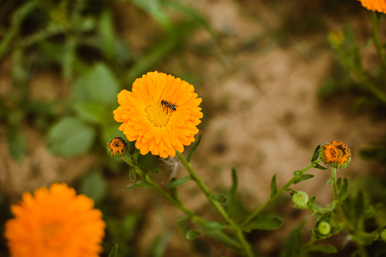 Semínka měsíčku lékařského se sejí co nejdříve na jaře přímo do země a pak nastává období péče, mechanizované okopávky, průběžného odplevelování, aby rostlinky mohly zdárně růst. Od konce června až do podzimu pak probíhá ruční sběr sluncem zalitých květů měsíčků.