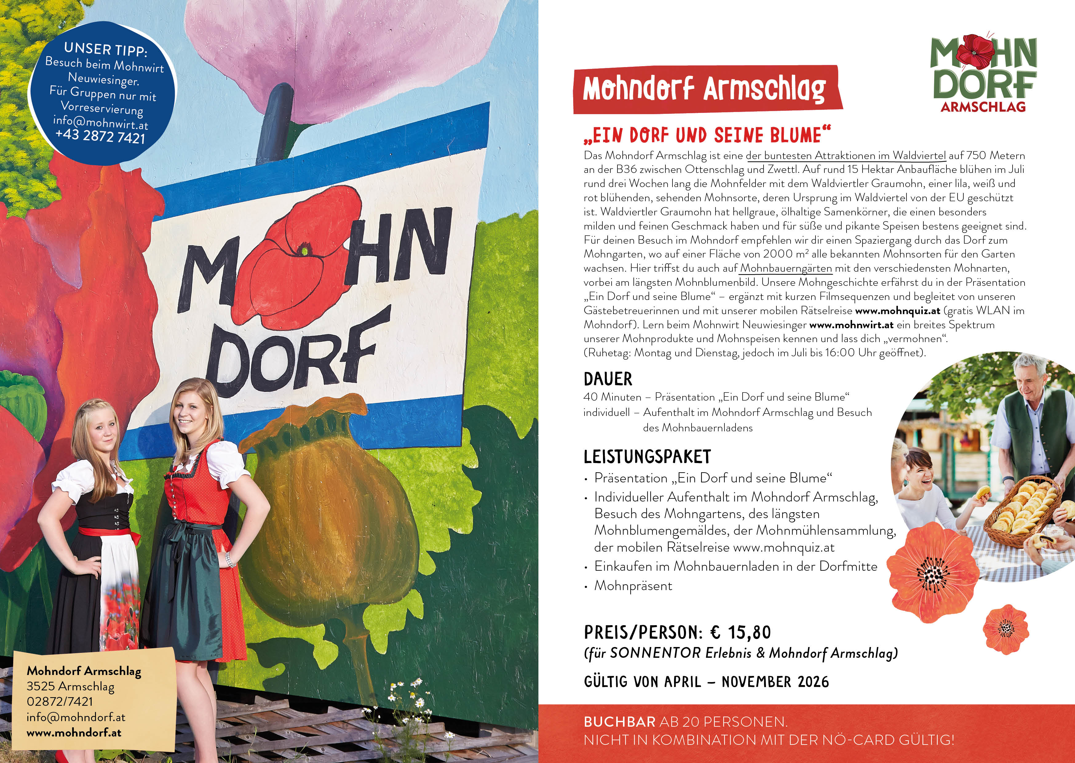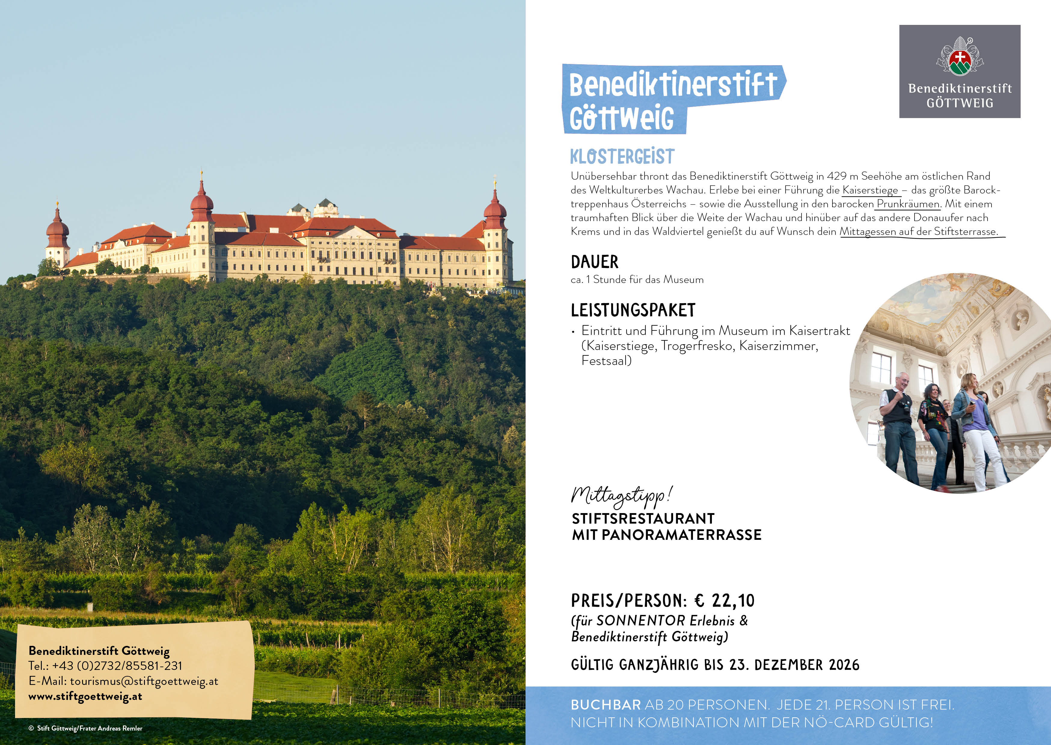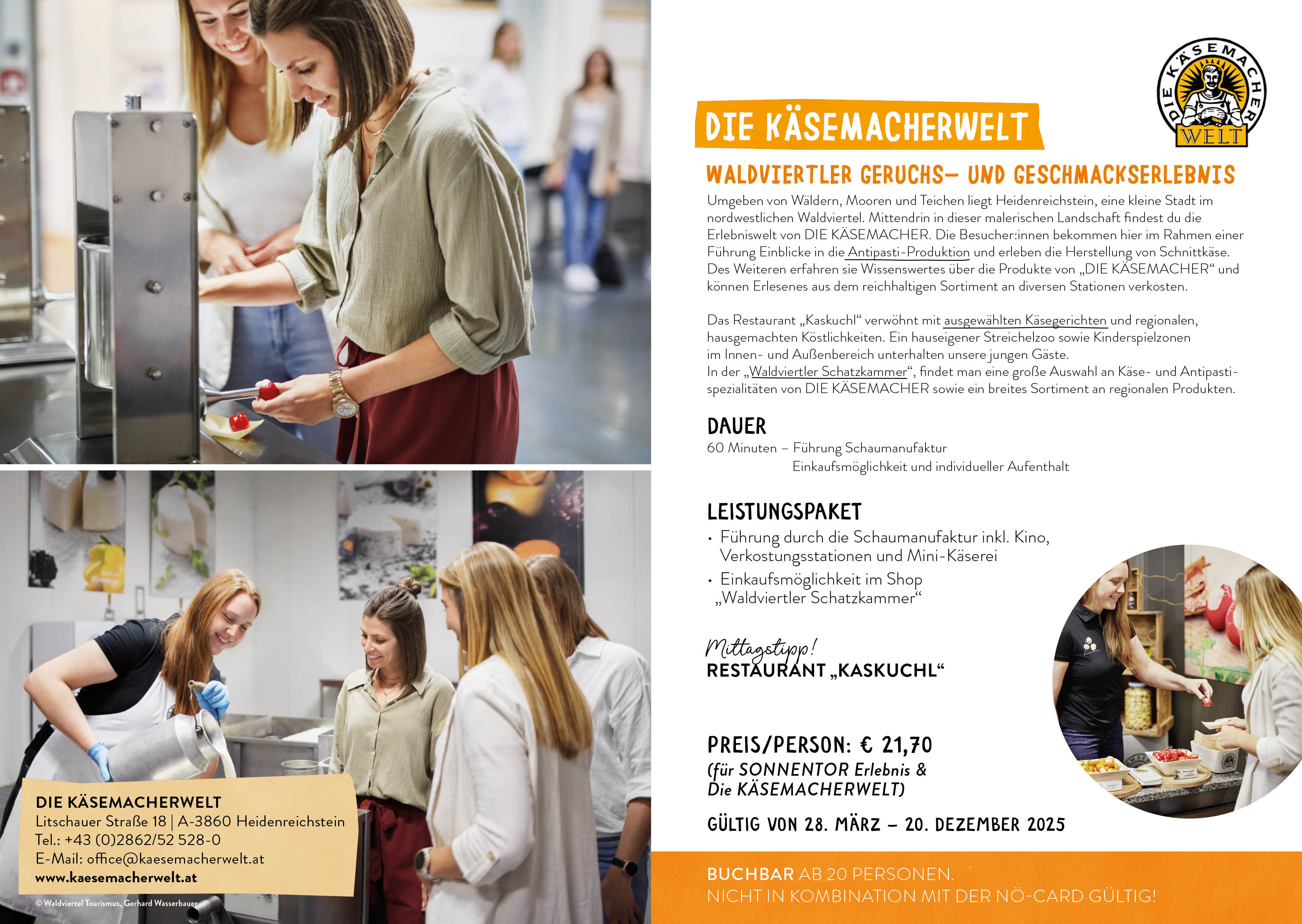Erlebe das Waldviertel bei deiner Gruppenreise auf vielfältige Weise. Verbinde deinen Besuch bei SONNENTOR mit den besten Ausflugszielen der Region und sichere dir exklusive Vorteile. Stelle dir dein Programm ganz einfach im Baukastensystem zusammen – wähle eine Führung bei SONNENTOR und kombiniere sie mit einem Angebot unserer Gruppen-Package-Partner.