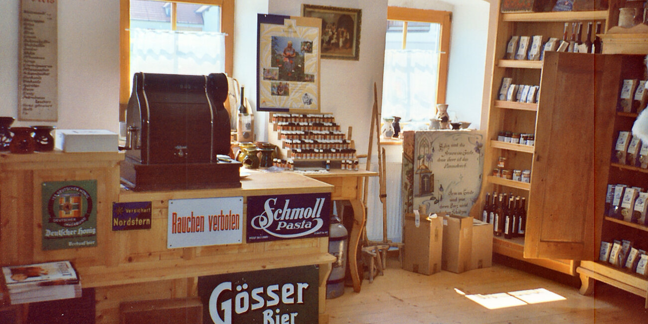 Anfangs hatte Hannes einen multifunktionalen Raum fertig, sein „Wohn-Schlaf-Büro“, wie er es heute nennt. Als er 1994 einen kleinen Teil dazu baute und seinen Wohnbereich etwas vergrößerte, richtete er im nun frei-gewordenen Teil seinen ersten Hofladen, die SONNENTOR Hofgreißlerei, ein. „Es sind immer mehr Leute gekommen, die sehen wollten, was ich hier mache“, erzählt er. „Die ersten Gäste waren aus Japan und Italien, die die Schönheit der Region schon damals zu schätzen wussten. Erst viel später kamen die Leute aus der Gegend“, ergänzt er. Authentisch wollte Hannes schon zu dieser Anfangszeit sein, füllte alte Bauernkästen mit seinen Produkten und ließ auch die traditionellen Bauernhof-Elemente sichtbar. Bis heute vermittelt das Geschäft in Sprögnitz, das seither mehrmals umgebaut, vergrößert und mit eigenen Ladenbau-Elementen ausgestattet wurde, noch immer dieses einzigartige Wohlfühl-Erlebnis von damals.