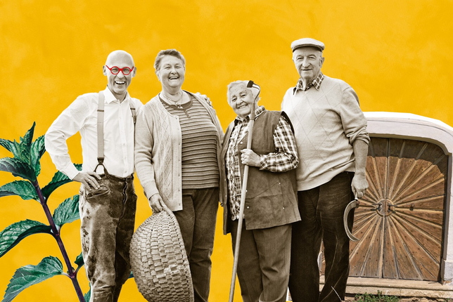 Der Teaser zeigt Hannes mit den Ursprungsbauern vor einem gelben Hintergrund.  | © SONNENTOR