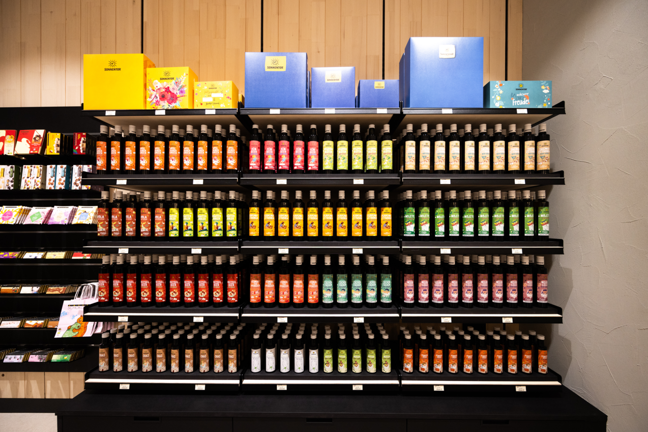 The products are displayed in the unique atmosphere that is characteristic of the SONNENTOR brand: enjoyment meets rural tradition and contemporary design. In addition to tea, coffee and organic juices, there are also some organic Waldviertler specialties on offer which can be enjoyed in the cozy ambience of the shop - and those who wish to savour sweet temptations on the spot, can go on a quick culinary discovery trip to the Waldviertel. Take a break from the busyness of shopping and enjoy the slowed atmosphere at SONNENTOR Innsbruck.